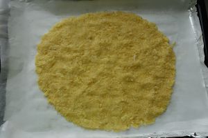 勺子背或刮刀拍成约2-3mm厚的薄饼,尽量压实;