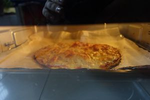 烤箱230℃、12min至表面芝士融化,金黄上色;