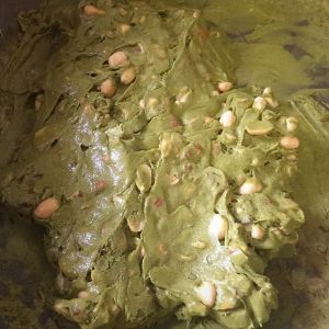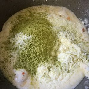 然后倒入80g奶粉(我这是有抹茶的呦。