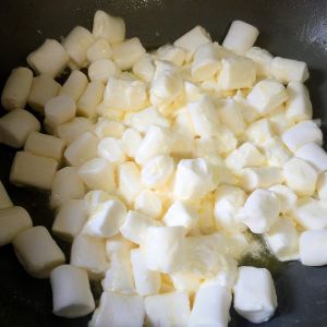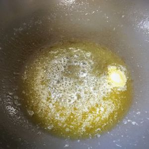 首先先把40g黄油放入锅里中火加热至融化后开小火