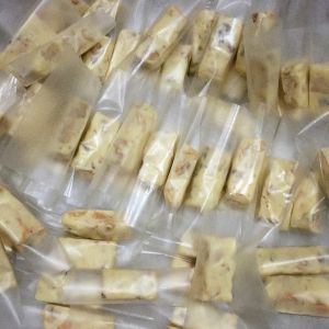 搅拌均匀后倒出来整成方形(我是用硅油纸垫在底下整哒。