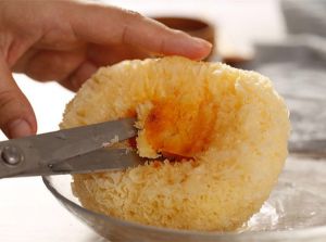 等待高压锅消气的空档,将雪燕过一下热开水,因为雪燕易煮化,所以过ㄧ遍热开水再加入煮好的银耳可以最好的保留雪燕的口感,