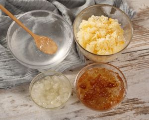 桃胶、皂角米、雪燕分开泡发12小时,并去除杂质。银耳泡发2小时,去除根部撕成小块