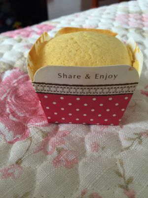 5、先预热烤箱一分钟,将融化的黄油加入打发的蛋液盆里翻拌均匀,用冰激淋勺舀入纸杯里,不要太满,三分之二即可,排除大气泡,烤盘放中层170度上下火烤30分钟,用牙签插入看看没有面糊就好了,没有好可以继续烤5分钟