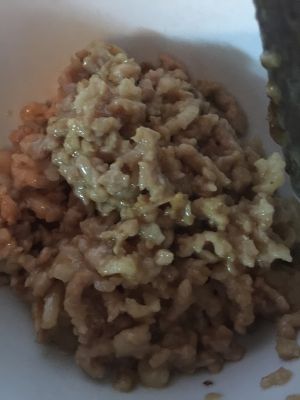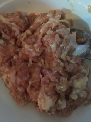 肉,剁碎,放入油,酱油,蚝油,椒盐粉,生粉,搅拌均匀,腌制半小时,待用