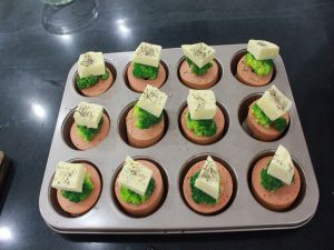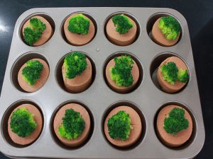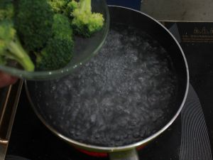 将西兰花洗干净分成12份,放入锅中煮熟,然后沥干