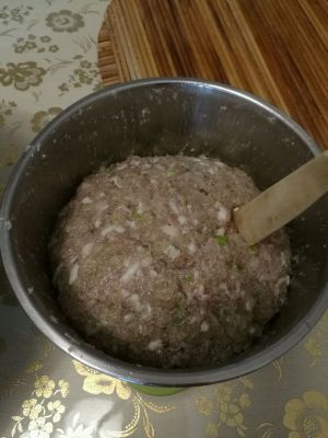 原料剁碎,顺时拌匀,加入生抽,料酒,盐,水,植物油拌匀。