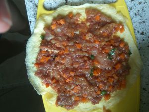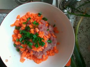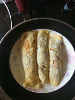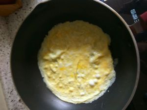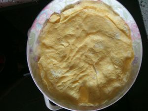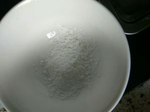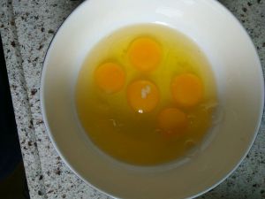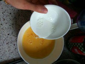 把搅拌好的淀粉水加入鸡蛋,增加粘稠性
