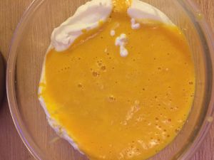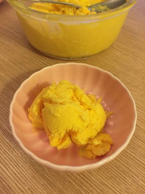 芒果糊和奶油搅拌 装容器冷冻 30-40分钟搅拌一次 搅拌3-4次