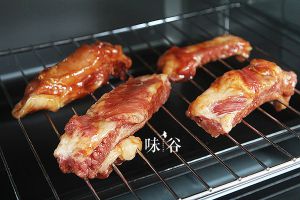 放好在烤架上,中层。底层放个烤盘接油,(烤盘上可以铺一层锡纸)