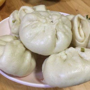 包子上第一层蒸笼(有块面剩下做馒头)。