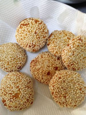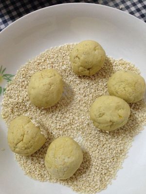 手心抹一点食用油,取适量面团搓成小球(我做的约20克)