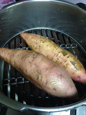 红薯洗净入高压锅,上气后10分钟蒸熟