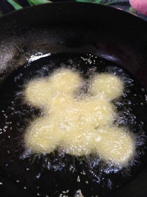 炸至两面金黄捞出,用吸油纸吸取多余油分即可食用。
