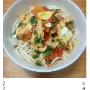 浇上西红柿鸡蛋汤,依个人口味加入其他调味品。