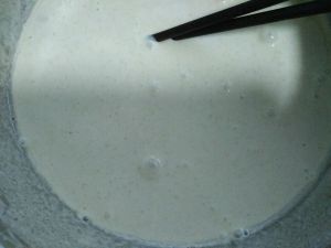 平底锅抹一层油,小火加热,倒入面糊,转动锅子或用工具抹匀