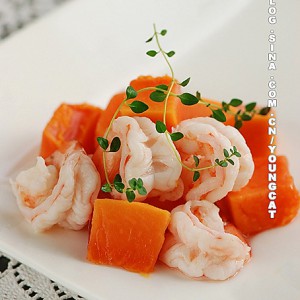 炒锅内放少许油,三成热时,下入葱、姜爆香,放入虾仁与木瓜,下入少量的盐与鸡精调味,快速翻炒几下即可起锅。