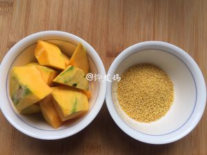 准备食材,小米用水略冲洗一遍即可,南瓜去皮去瓤,切小块备用。