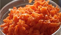 红萝卜切成这样的小粒,记住,一定要切成酱紫啊,不要用那啥刷丝,用你的爪子抓着菜刀切!哈哈,不熟练的就权当练习耐性吧!
