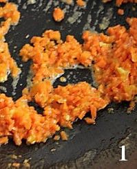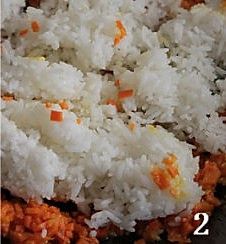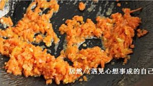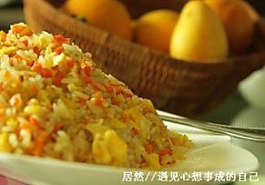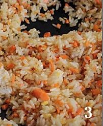 下图一:等红萝卜末彻底的和蛋黄融为一体时候,把米饭倒进去!