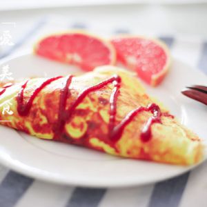 将蛋包饭倒扣入盘中,挤上番茄酱装饰