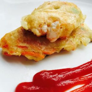 马蹄、鲜虾、胡萝卜、盐、鸡粉拌匀腌制半小时