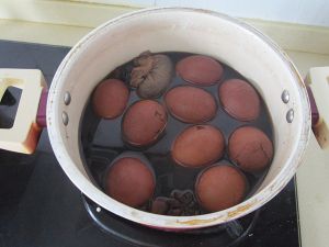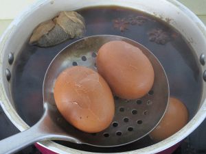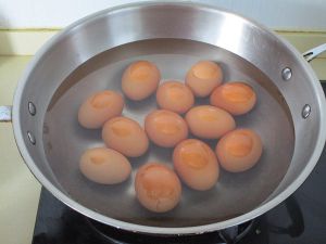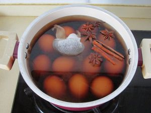另起锅把鸡蛋加入后加入清水,水量能浸没鸡蛋,再把所有调料倒入