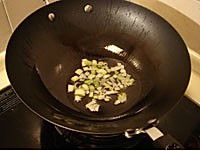 锅中油热后,放入葱花炒香;