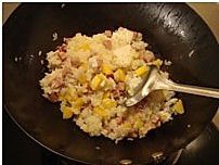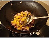 放入火腿丁稍炒;