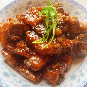一定要小火炒,炒到有一点粘稠时倒入排骨