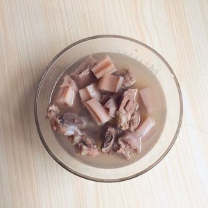 排骨冷水下锅放三片姜片一勺料酒绰至变色捞出沥干