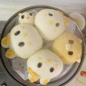 哇哇哇,蒸好啦蒸好啦!小兔子猪猪馒头特别松软好吃面香浓浓噢~