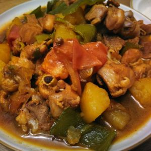 然后加入土豆跟青椒 中小火炖煮20分钟