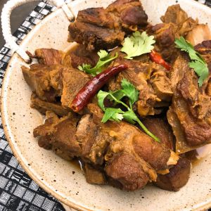 准备调料:味极鲜2汤匙,老抽1茶匙、蚝油2汤匙、料酒2汤匙,盐10g左右、黄豆酱1勺、豆腐乳1块和腐乳汤1勺、姜3片、葱半根、大料2个、桂皮1块、香叶1片、干山楂片5片左右。(1汤匙=15ml,1茶匙=5ml)