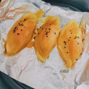 最外层刷上一层蛋黄液,撒上少许黑芝麻,空气炸锅预热,放入空气炸锅160℃ 12分钟,取出