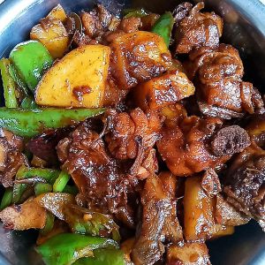 加入清水,没过鸡块,大火烧开,改中小火炖二十分钟,倒入土豆块继续炖