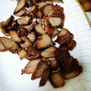 230-250度预热烤箱,把腌好的肉放到烧烤架上,230-250度烤15或12分钟,有的烤箱最高温度是230度就烤15分钟,最高温度是250的烤12分钟,之后调210度继续烤25分钟,把白开水倒入麦芽糖碗中搅动至麦芽糖完全融化,自制麦芽糖派上用场了。然后取出叉烧肉均匀的刷上麦芽糖水,再继续烤12-15分钟,这期间可以再取出刷一次麦芽糖水