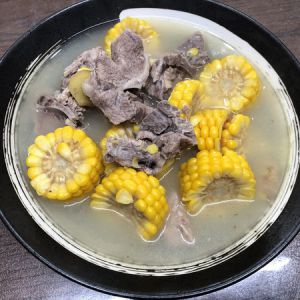 出锅前加盐和鸡精调味。排骨汤配上玉米的甜味,非常鲜美。