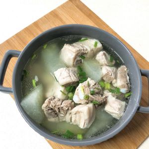 倒入炖烂的排骨煮开,加盐到冬瓜烂了就可以。