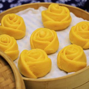 CO-745S蒸汽烤箱,水箱加满水,选择自动菜单A02"奶香馒头“,馒头放入开始蒸制,蒸制结束后放置5分钟再出炉,好吃又好看的南瓜玫瑰馒头就好了。
