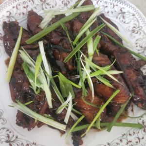 酱汁粘稠时可以装盘,撒上葱丝。不喜欢葱丝可以不放。