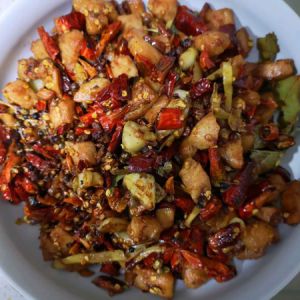 鸡胸肉切小丁加入料酒、老抽、耗油、生抽、盐、姜腌制30分钟。