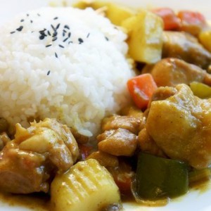 土豆块和胡萝卜块不容易熟,所以事先加工至半熟,比如放入微波炉出加热两分钟,再把半熟的土豆块和胡萝卜块加入到炒锅里一起煸炒;
