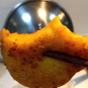 5.平底锅放入适量油开始煎。对了,上面还有一步我忘记拍图了。入油锅前,面团洒上面包糠。