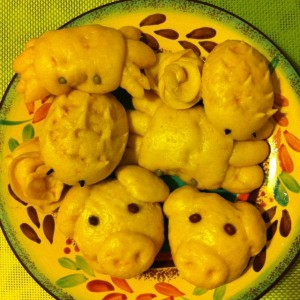 小面团制作成你想要的形状,用豆粒装饰好。放在蒸屉上蒸15分钟。