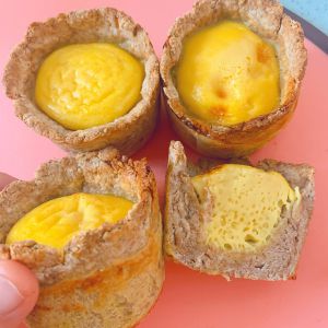把面团均匀的按压到纸杯内壁,蛋挞皮也可以用燕麦香蕉泥代替。