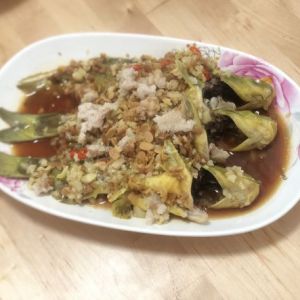最后再在上面少放一点肥点的肉沫,和豆酱(也可以用酱油代替哦)可以让味道更柔美。如果不放肉沫也可以蒸熟后用热油淋一下。蒸个12分钟左右即可