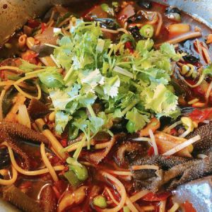 小火 放入姜蒜辣椒皮稍微翻炒 倒入调料
