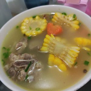 萝卜玉米切块等待排骨煮半个多小时放菜,然后再煮20至30分钟,放些许味精和盐,就可以起锅啦