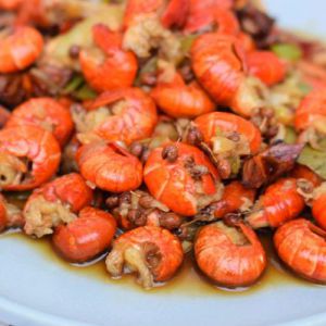 接着加入少许鸡精,再淋入少许的酱油,盖上盖子焖煮到龙虾入味即可